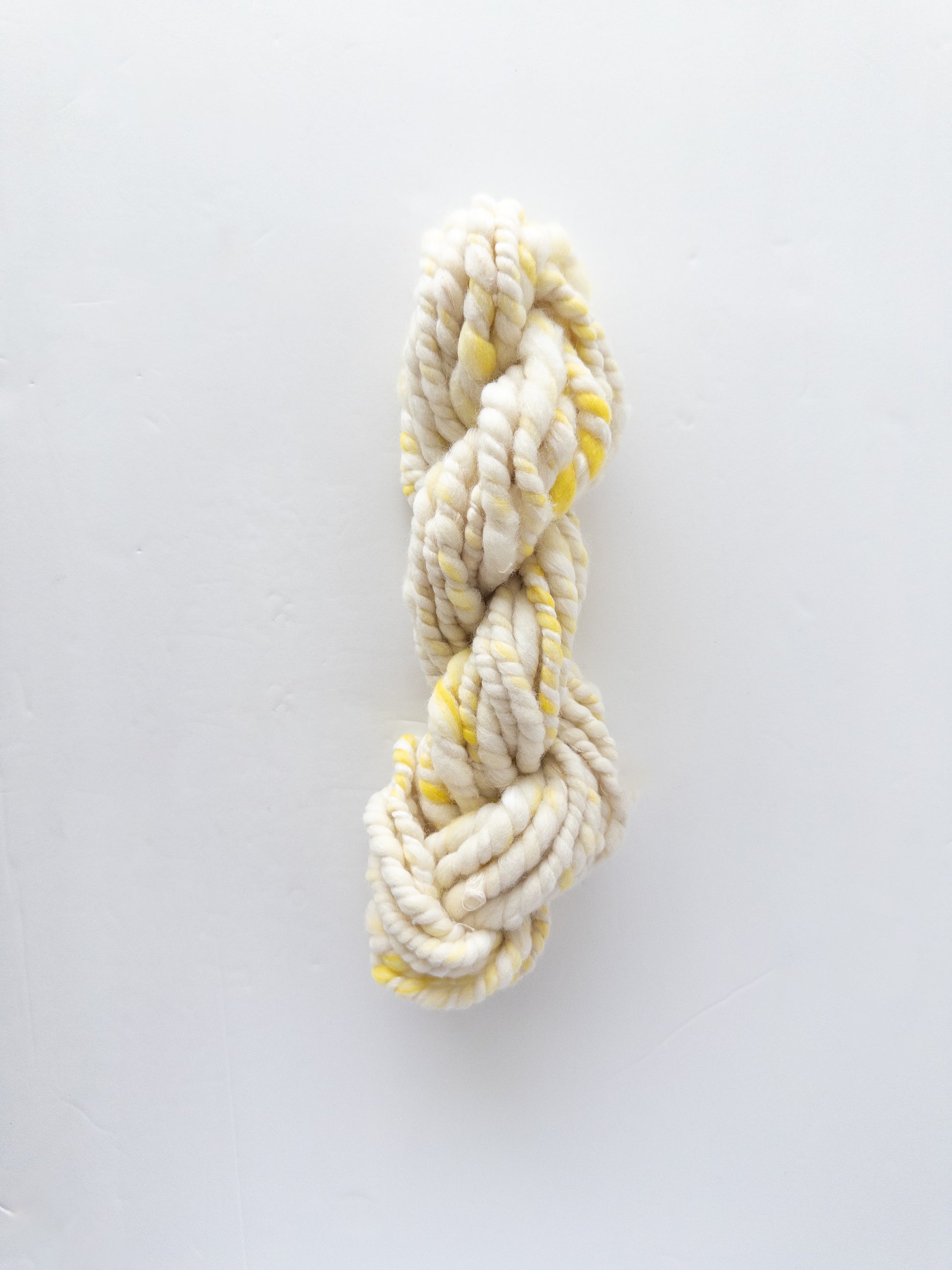 2 ply ivory and light yellow based yarn.