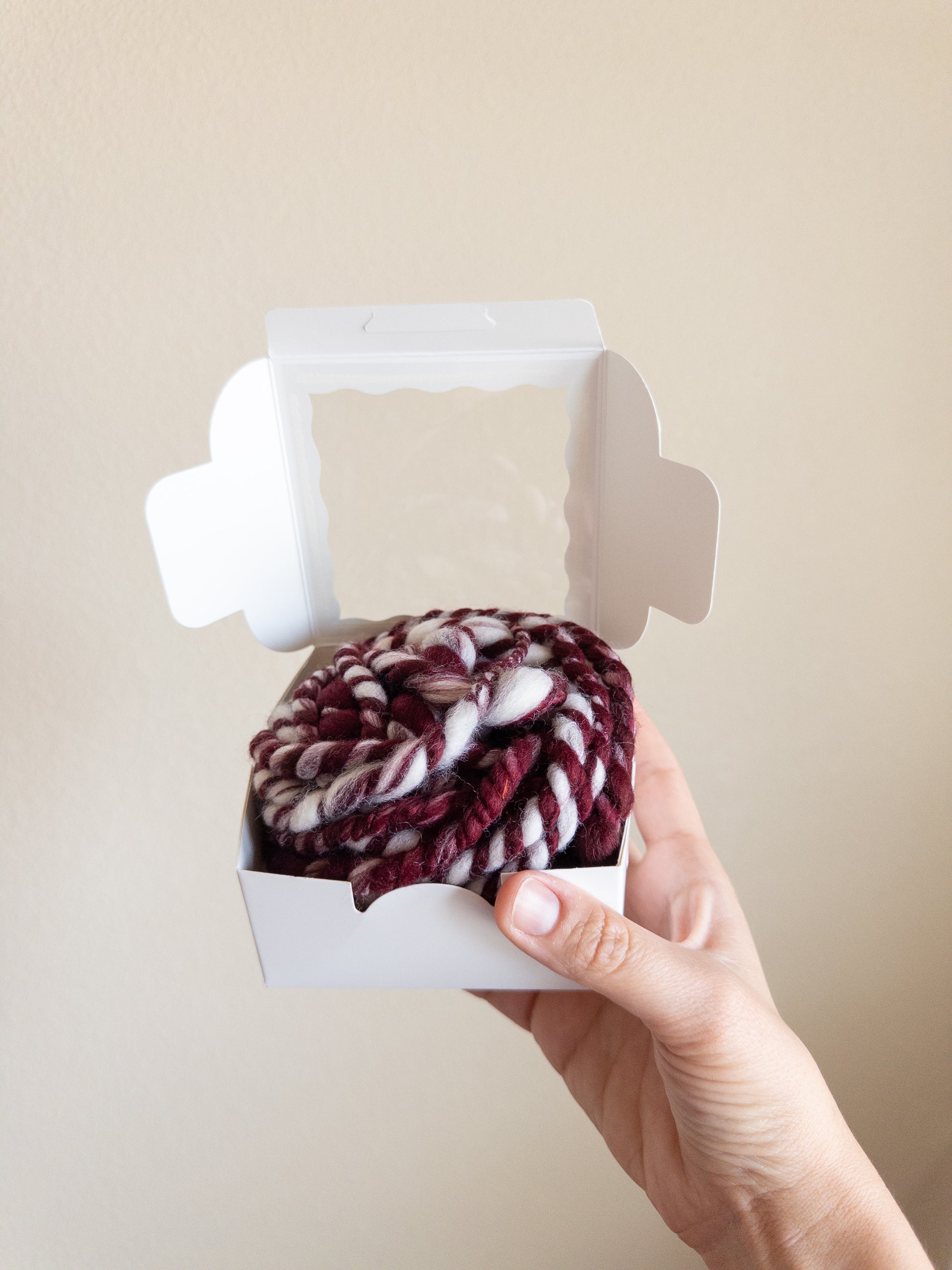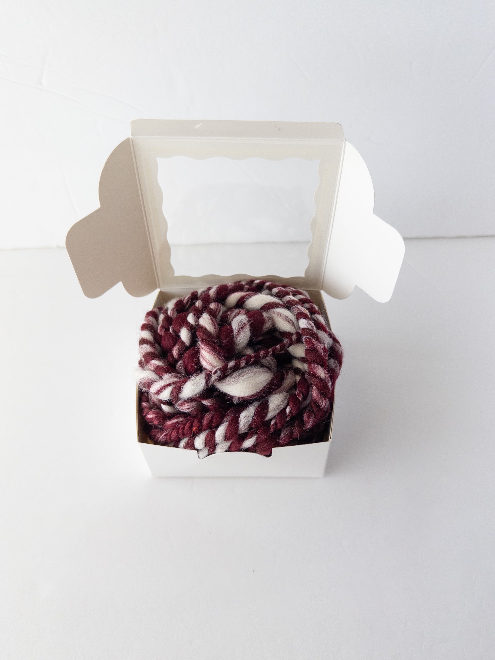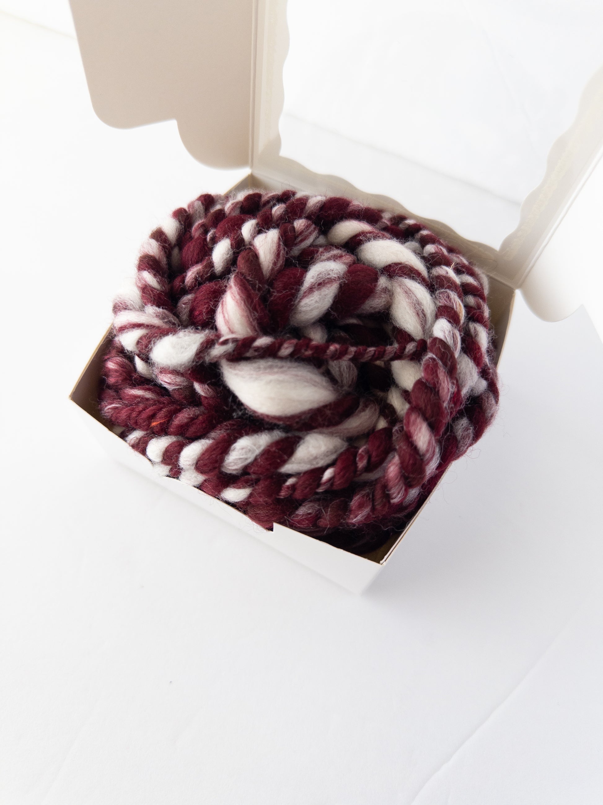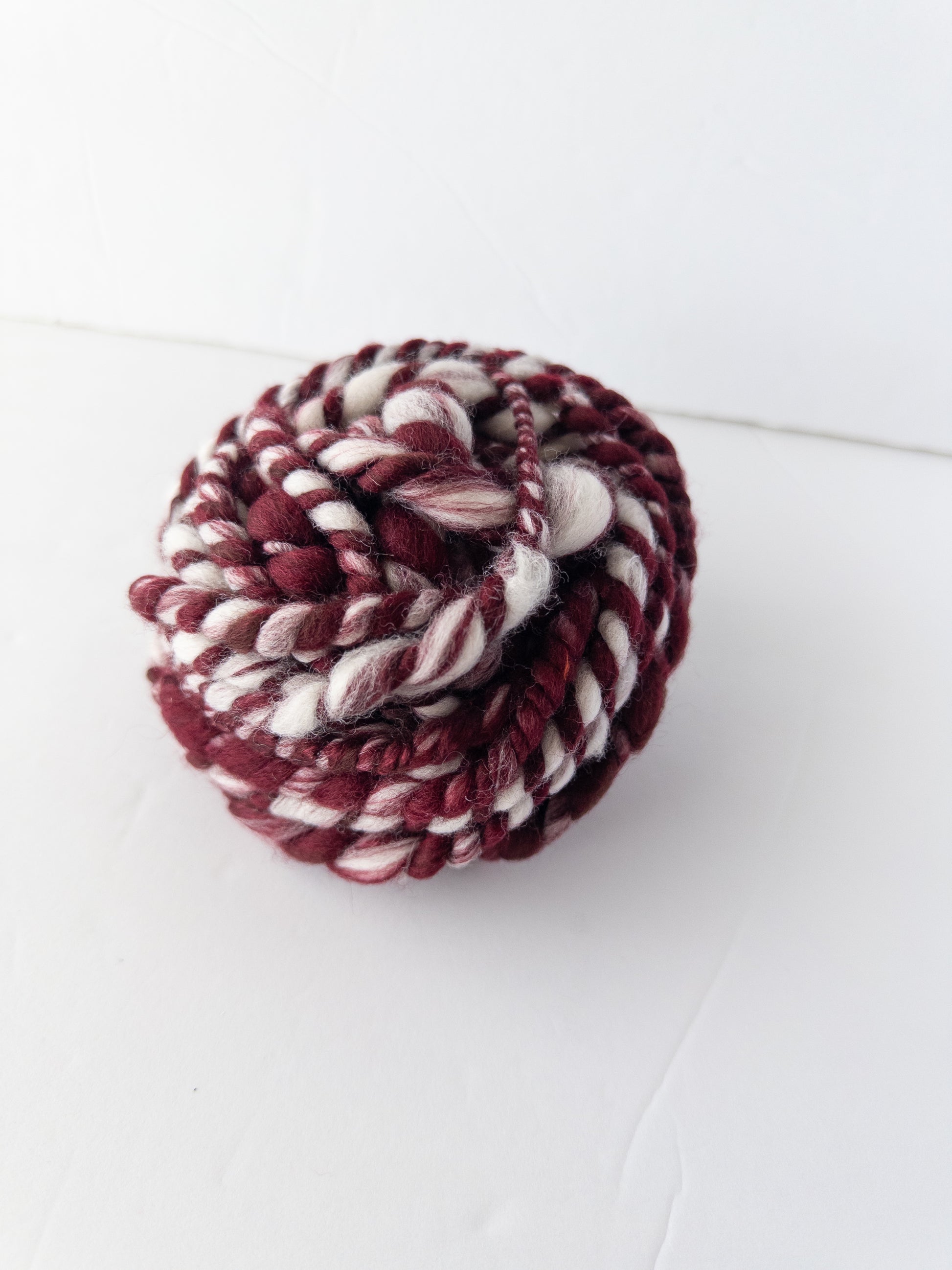 This is an art yarn that I spun myself, the twist may be too tight or too loose in some areas as well as thick and thin. Pretty much, it is not perfect but will create a gorgeous organic look in your weavings.