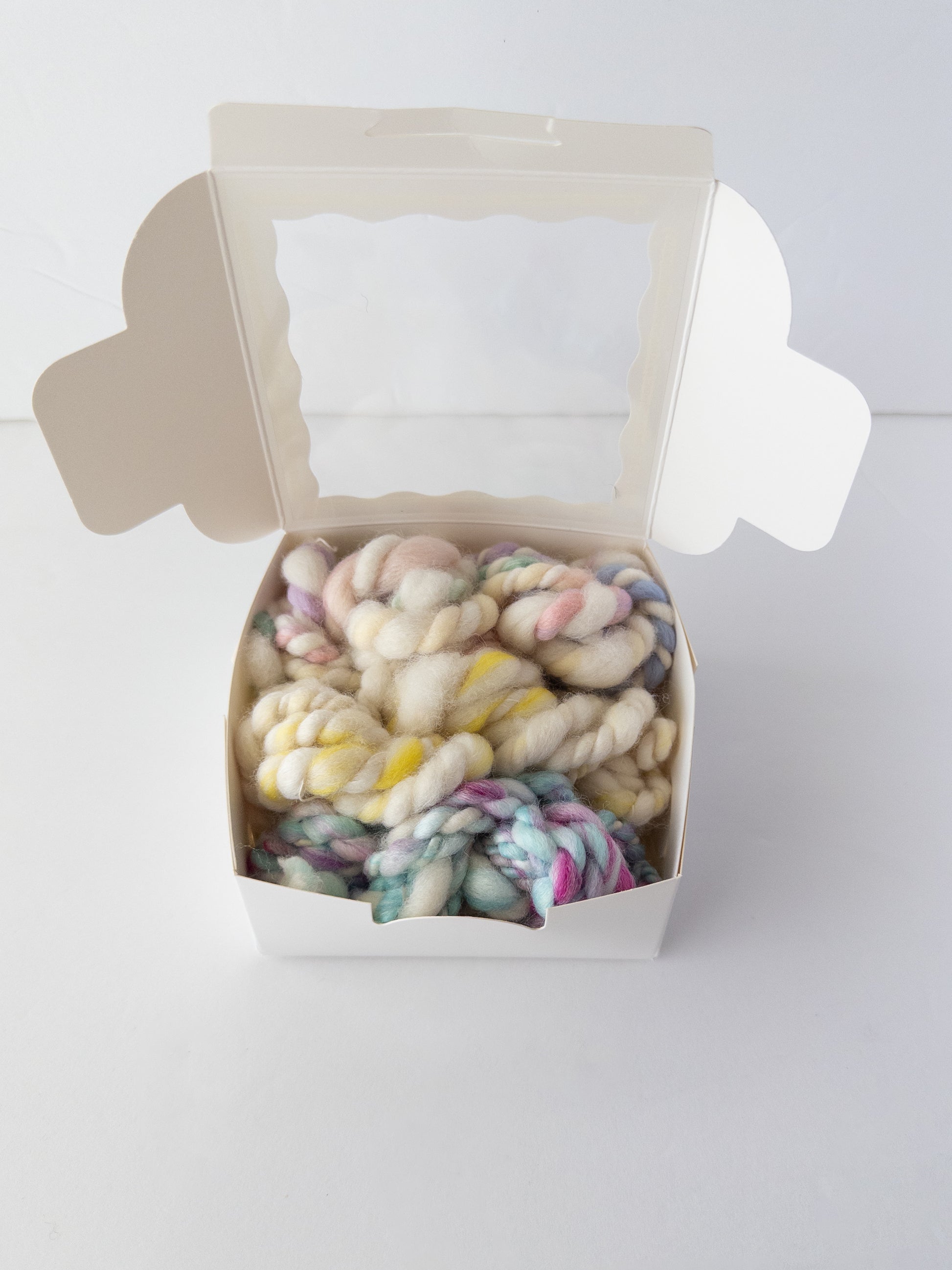 This is an art yarn that I spun myself, the twist may be too tight or too loose in some areas as well as thick and thin. Pretty much, it is not perfect but will create a gorgeous organic look in your weavings.