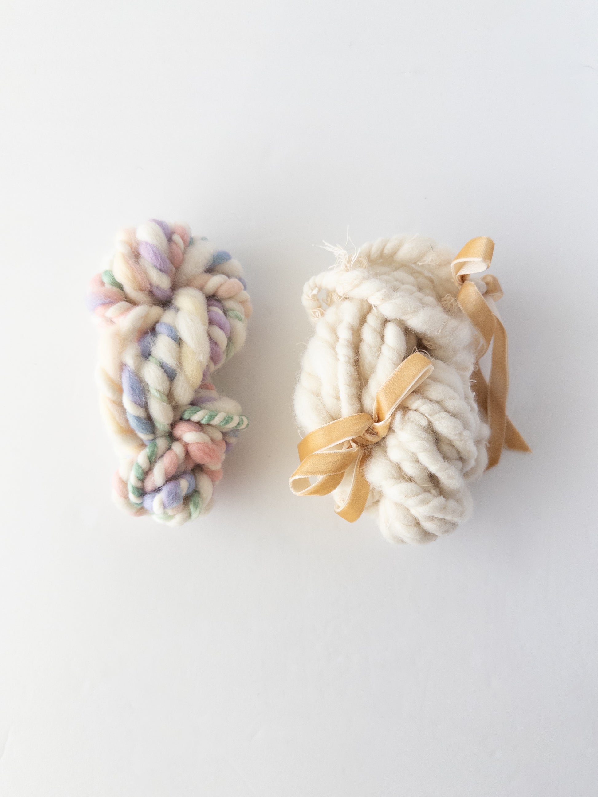 2 skein off cuts from coquette (featuring 2 bows) and macaron from the dessert collection.