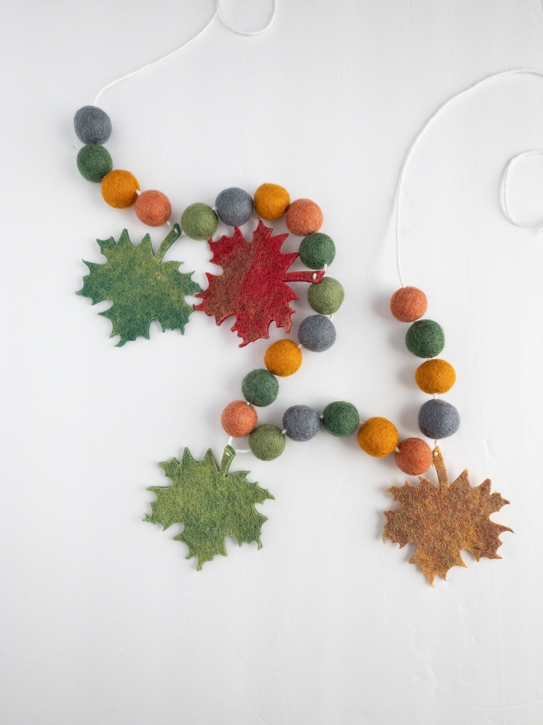 String is 6 ft long. You can adjust the felt balls and leaves to be closer or farther apart.